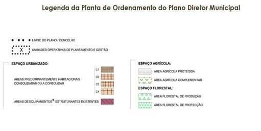 O PDM (Plano Diretor Municipal), classifica a área como "Área Predominantemente Habitacional, Consolidada ou a Consolidar " - C4, conforme poderá ser verificado no extrato da Planta de Ordenamento, aqui publicada.